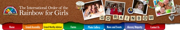 This web page acknowledges allegiance to the Supreme Assembly, International Order of the Rainbow for Girls, whose seat of authority is in McAlester, Oklahoma, U.S.A.; of which Reverend W. Mark Sexson was the founder; Mary Adeline Bradford is Supreme Worthy Advisor; and the Grand Jurisdiction of Florida where Mrs. Jackie Harmon is Supreme Inspector.